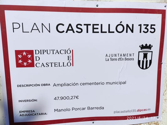El Ayuntamiento de La Torre d'En Besora ha ampliado el cementerio municipal, para ello ha sido necesario la construcción de muros de hormigón armado de contención de tierras, de hasta 7 metros de altura, ampliando de este modo la plataforma del cementerio. También se ha construido un nuevo módulo de 20 unidades de nichos 8 columbarios.