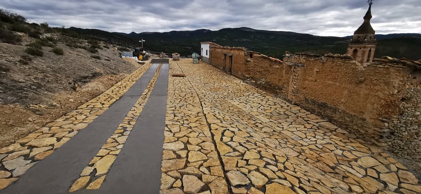 Se ha repavimentado la zona incluida en este ámbito de actuación, puesto que el pavimento existente se encontraba en mal estado. De esta manera, se ha mejorado la accesibilidad, utilizando materiales integrados en el entorno, como la piedra, elemento fundamental del carácter del municipio de Palanques.